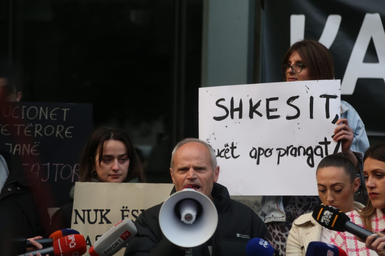 ‘Isha në Has dhe erdha urgjent për këtë protestë. Ngushëllime familjeve të viktimave. Pas çdo vrasje ngushëllimin më të madh duhet të bëjë drejtësia. Kur drejtësia bëhet palë me kriminelin, ky gjykatës bëhet palë me kriminelin. Më kanë vrarë motrën më 4 shtator. Gjykata e ka liruar nga burgu më nëntor, pse se kishte marrëdhënie të mira me komunitetin. Shefqet Lika e vrau në bashkëpunim me motrat e veta. Gerd hoxha ky gjyqtar. Kur hasmit i dilet prite nuk vritet. Sot po vritet pa pikën e frikës dhe bashkëpunëtor është drejtësia. Vrasja e një njeriu vlen më shumë e një personazh i Big Brother. Duhet të protestojmë para.’- tha qytetari