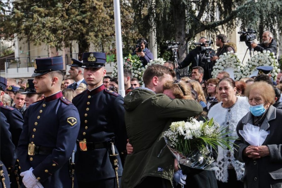Me lotësh, pranë arkivolit të mbuluar me flamurin grek siç e do ceremonia ushtarake në vendin fqinj, Klaudia Lata u përcoll për në banesën e fundit.