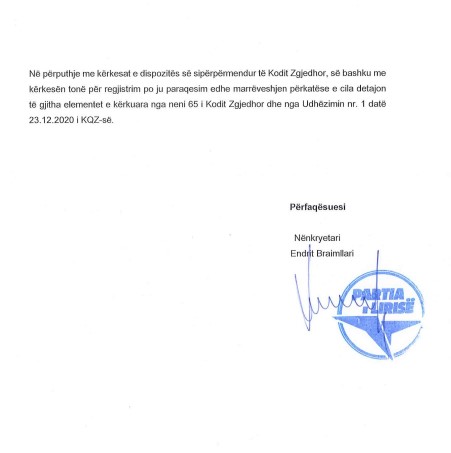 Dokumenti i dorëzuar nga Partia e Lirisë në KQZ: