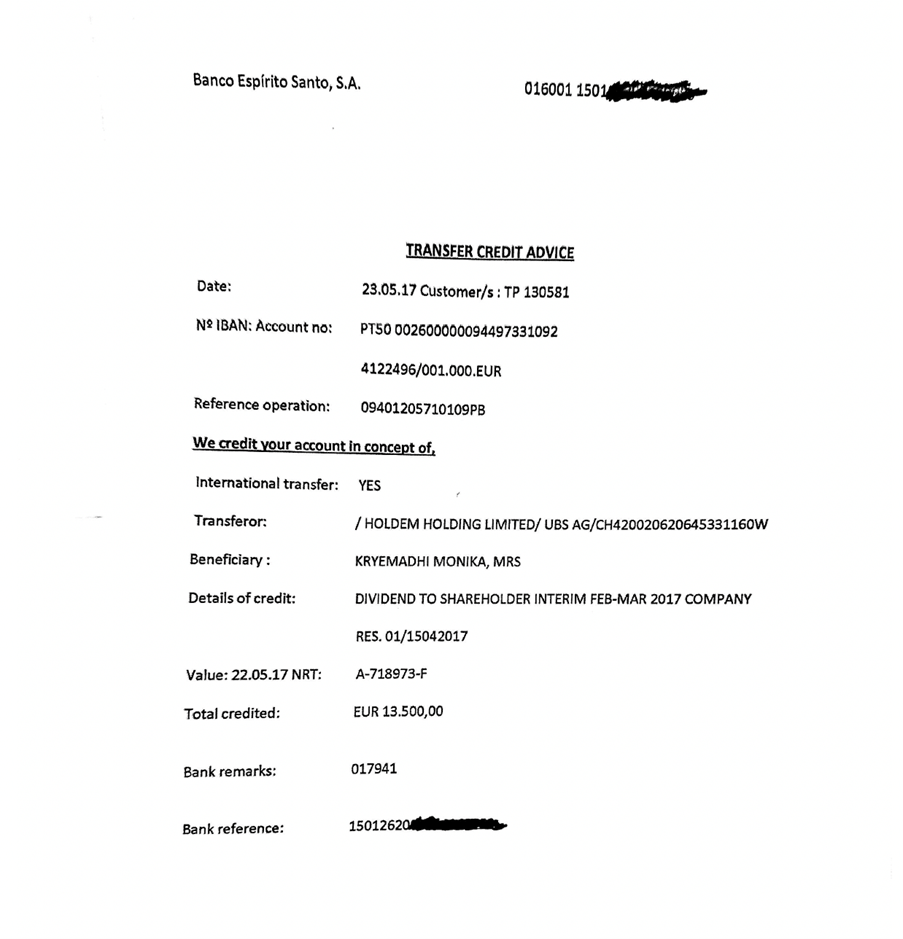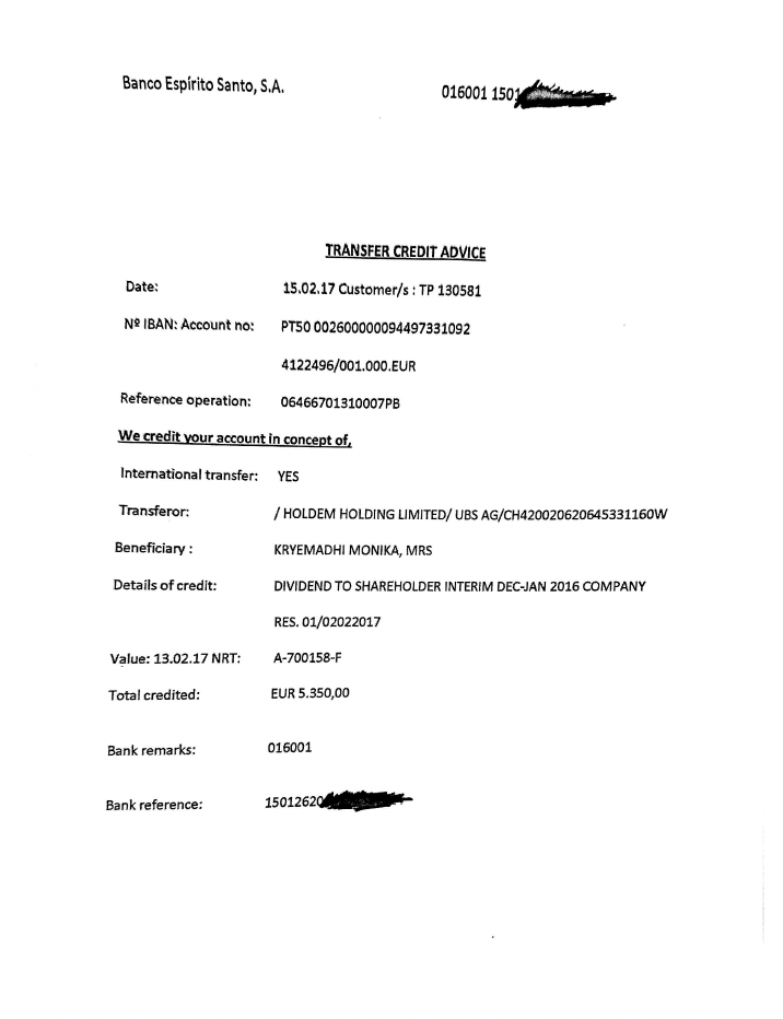 Siç përshkruhet në disa dokumente të publikuara, paratë janë dhënë me përshkrimin ‘dividend për aksionarët’ dhe ‘shërbimet e marketingut’.