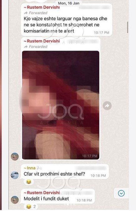 “Kjo vajzë është larguar nga banesa dhe nëse konstatohet të shoqërohet në komisariatin më të afërt”, është mesazhi i shefit Rustem Dervishi, shoqëruar me foton e vajzës, shpërndarë në grupin e punës në rrjetin social Whats App, të efktivëve të Komisaritatit Nr.1.