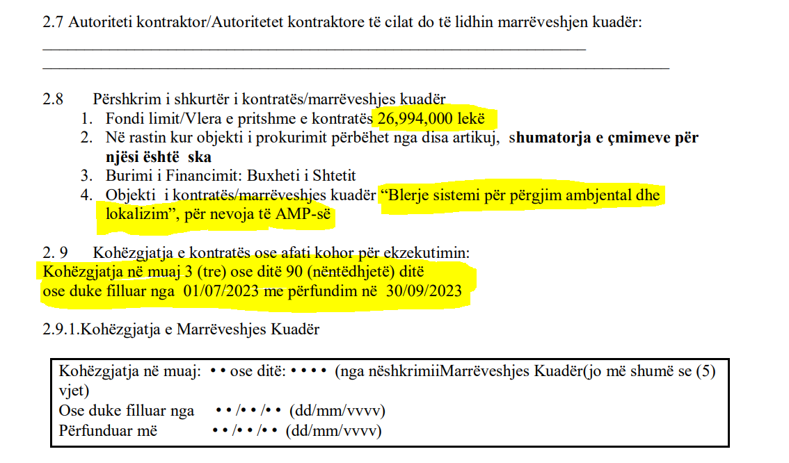 Në dokumentet e këtij tenderi theksohet se paratë që do shpenzohen për këtë pajisje janë nga buxheti i shtetit. Pra, me paratë e taksave po blihen pajisje që do përdoren vetëm për qëllime të caktuara, ndërkohë që e çuditshme në këto dokumente është edhe kohëzgjatja e kësaj kontrate, e cila është vetëm 90 ditë.
