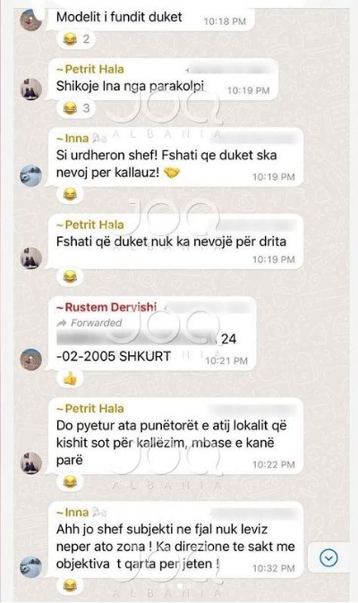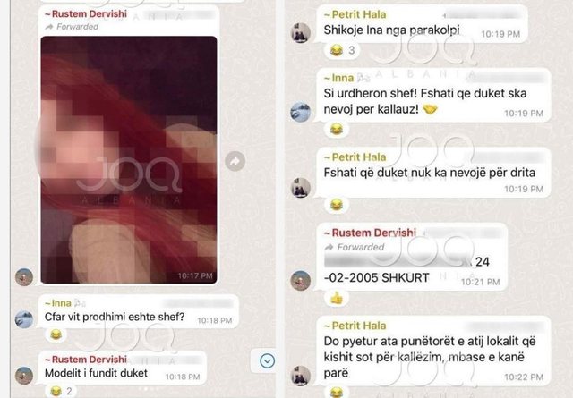 Që të tre u përfshinë në një bisedë në kapërcim të kufijve të perversitetit dhe seksizmit ndaj së miturës e cila ishte shpallur e zhdukur nga familjarët e saj. Ndërsa prindërit prisnin “lajmet e mira” nga “policia që duan”, tre efektivët e nivelit të lartë bënë atë që nuk duhet, duke nisur komentet aspak etike në grupin e punës në aplikacionin Whatsapp. Burrat e frustruar edhe seksualisht që mbajnë veshur uniformën e policisë së shtetit, nuk i përmbajtën komentet e ndyra, duke përmendur “parakolpin”, (gjoksin) e së miturës, “vitprodhimin” (moshën), apo ironi të tjera që në çdo rast ishin “epshe”, të cilave iu bashkua “policja më e njohur” në vend, Ina Nuka.