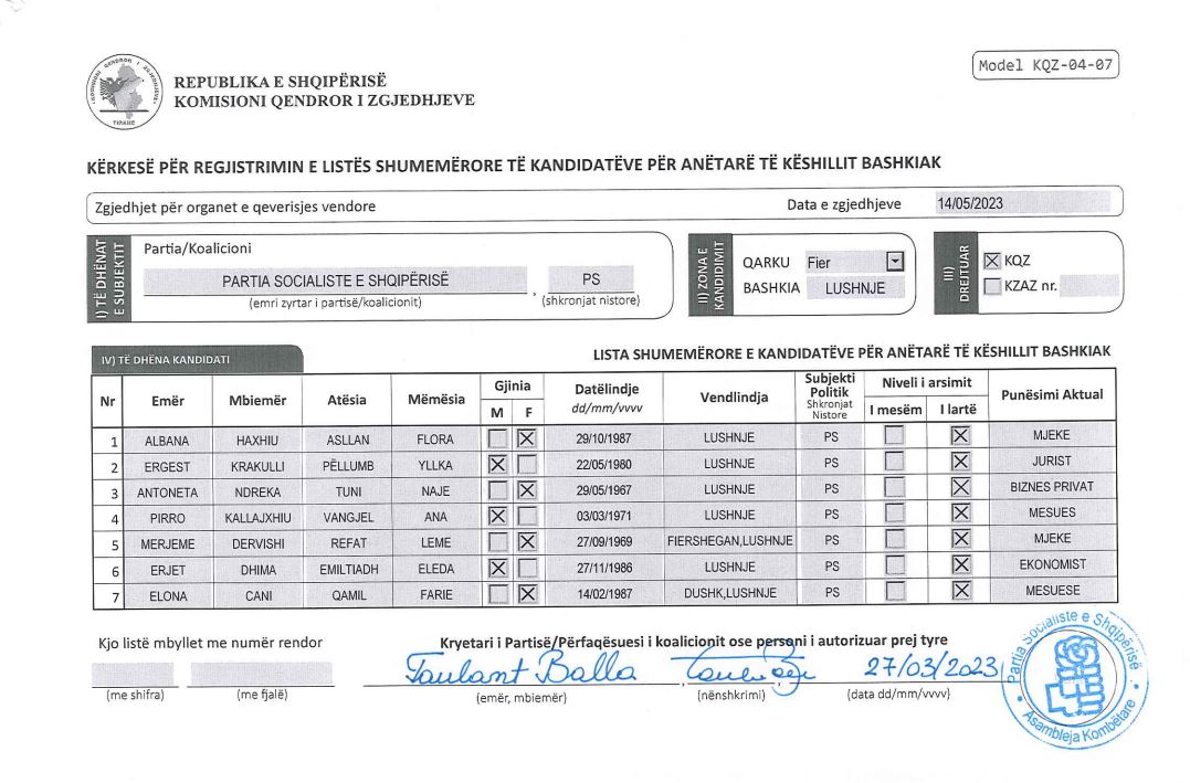 Në një kohë që ngelen edhe më pak se 50 ditë nga zgjedhjet lokale të 14 Majit, forcat politike që garojnë të vetme dhe koalicionet kanë dorëzuar në KQZ edhe listat e kandidatëve të tyre për Këshillat Bashkiakë.