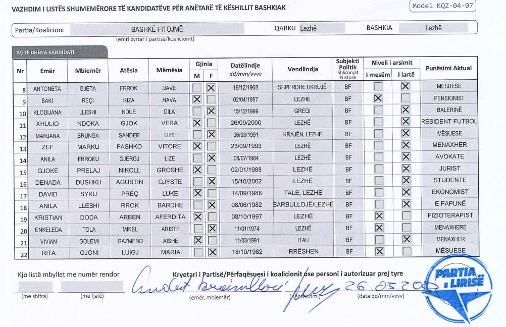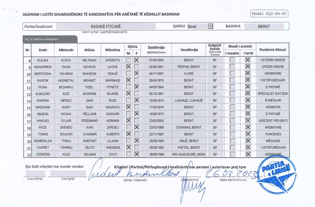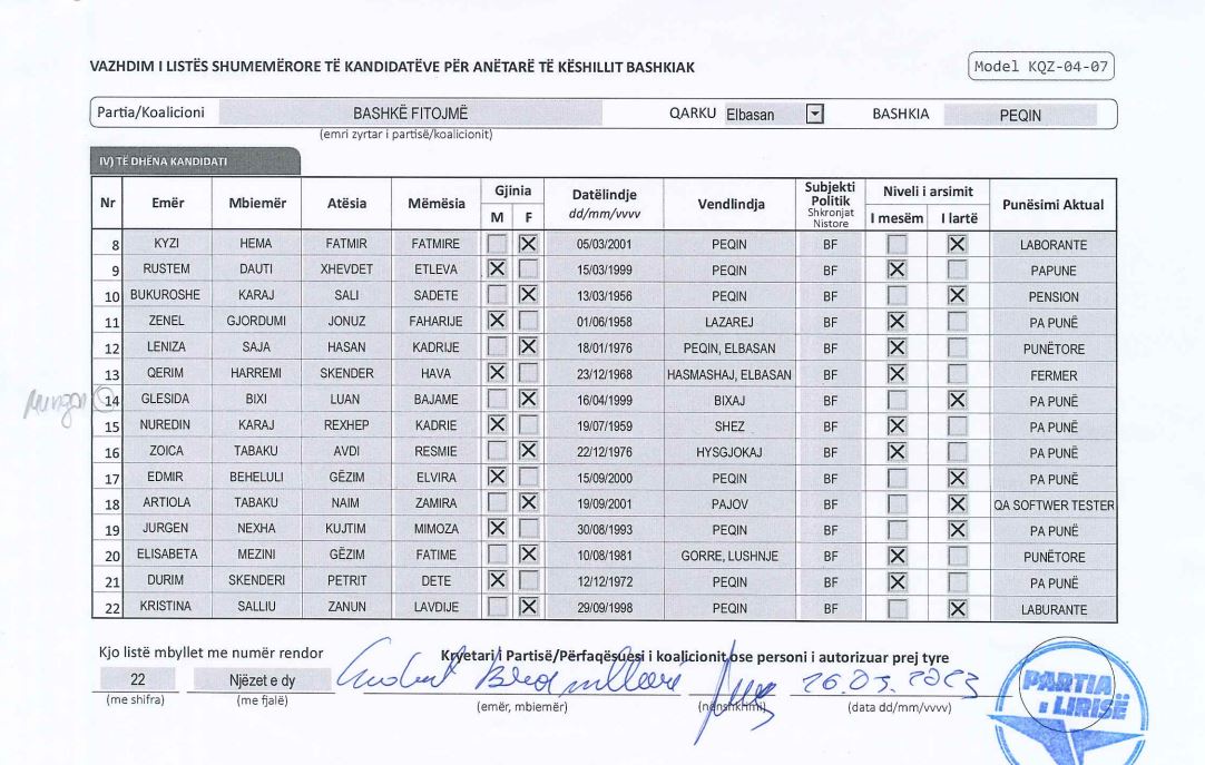 Kanë mbetur edhe më pak se tre orë nga mbyllja e afatit zyrtar për të dorëzuar në KQZ listën e kandidatëve për anëtarë të Këshillave Bashkiakë për zgjedhjet lokale të 14 majit.