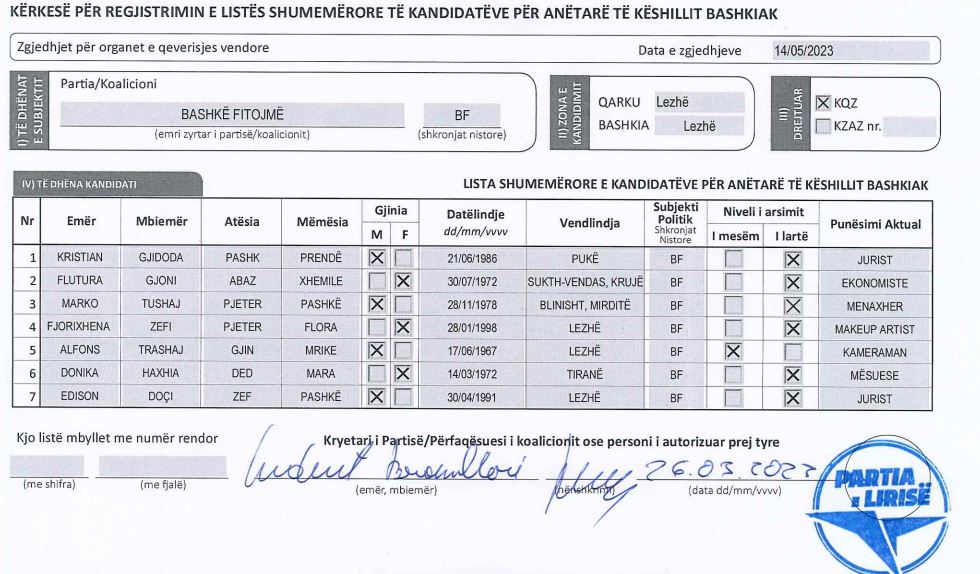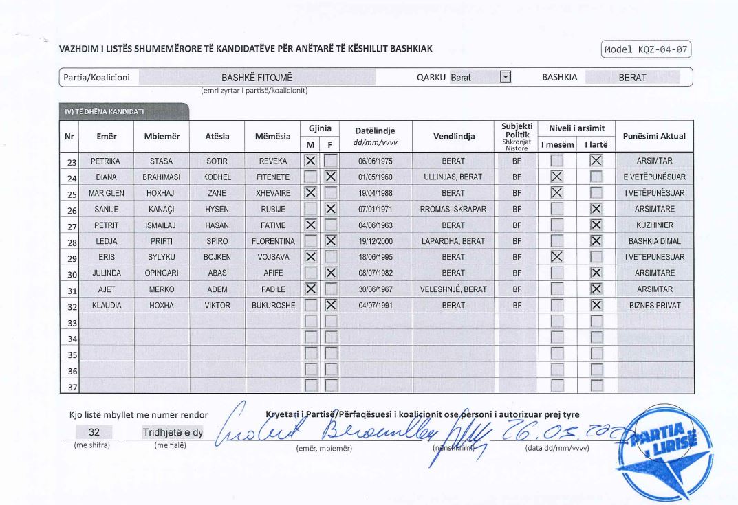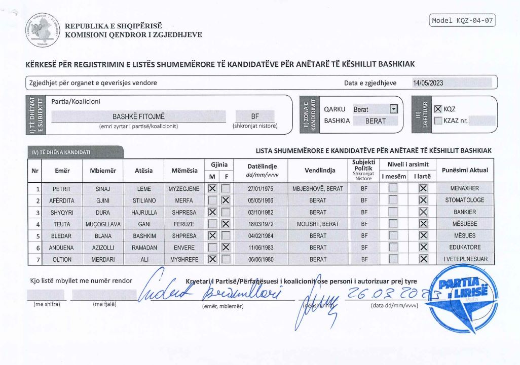 Ndërkohë, nga koalicioni “Bashkë Fitojmë” i Sali Berishës dhe Ilir Metës janë zbardhur emra për bashkitë Berat, Lezhë dhe Peqin.