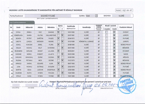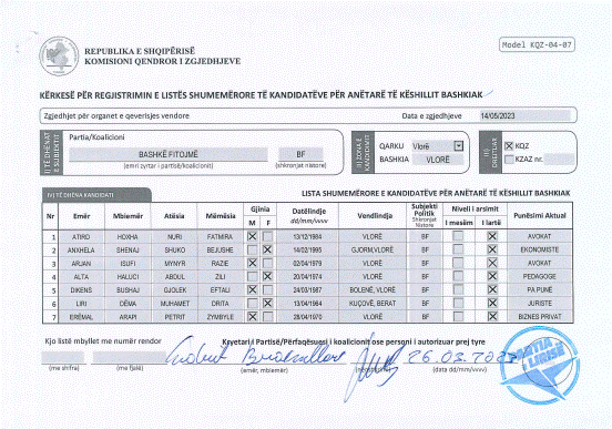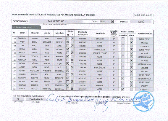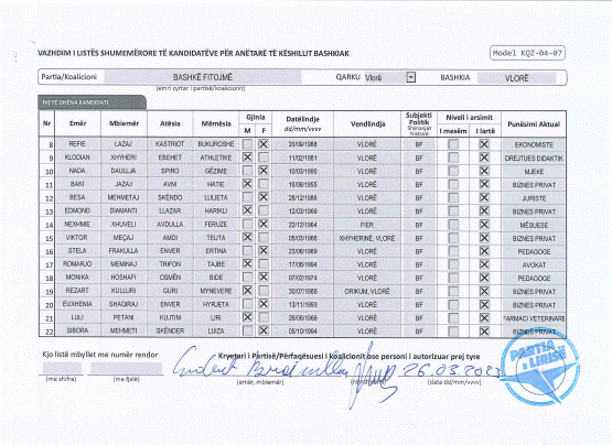 Lista e kandidatëve të koalicionit “Bashkë Fitojmë” për Këshillin Bashkiak të Vlorës