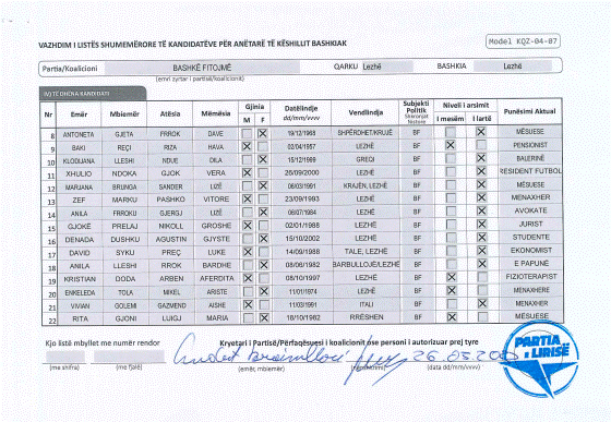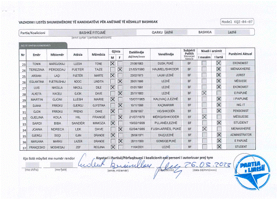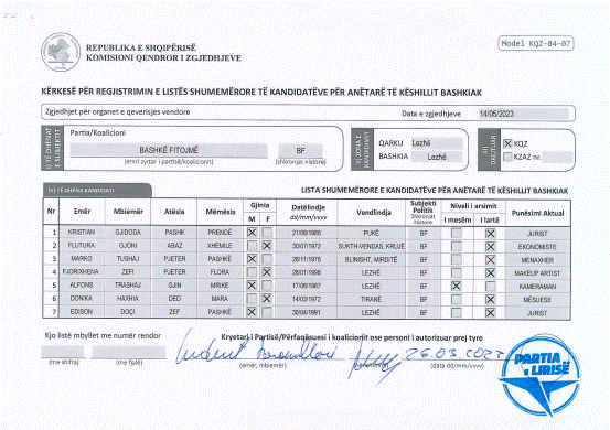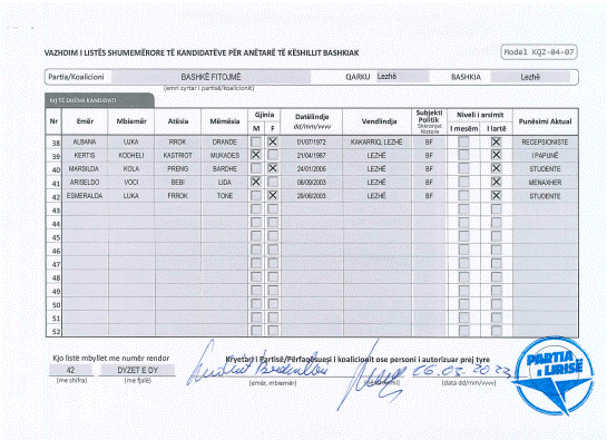 Lista e kandidatëve të koalicionit “Bashkë Fitojmë” për Këshillin Bashkiak të Lezhës