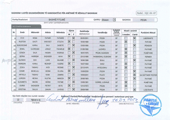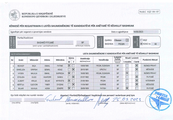 Lista e kandidatëve të koalicionit “Bashkë Fitojmë” për Këshillin Bashkiak të Peqinit
