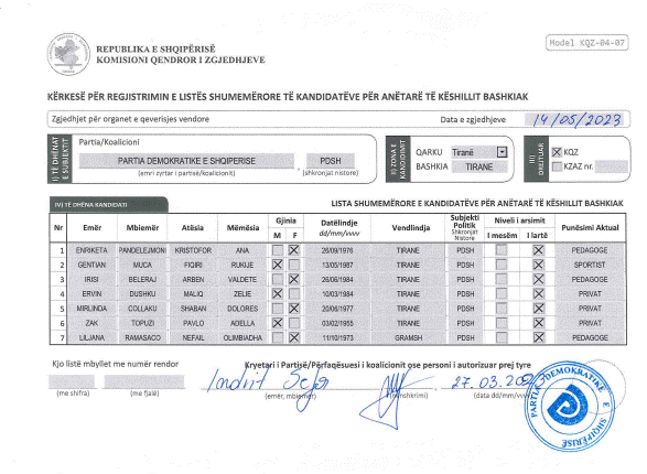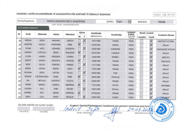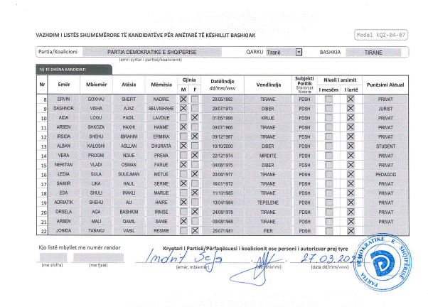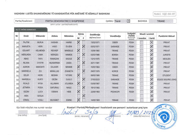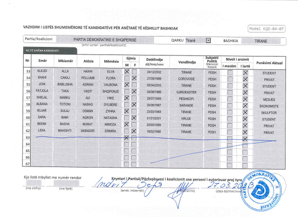 Lista e kandidatëve të PD së Alibeajt për Këshillin Bashkiak të Tiranës