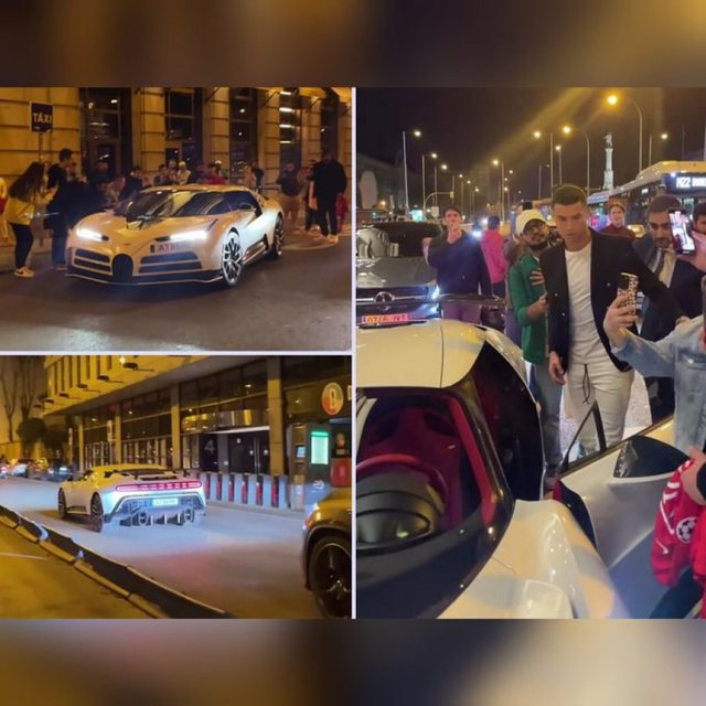 Cristiano Ronaldo u shfaq për herë të parë në publik mbrëmjen e djeshme me Bugatti-n Centodieci të tij të ri, një nga makinat më të shtrenjta në botë.