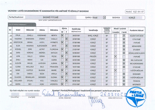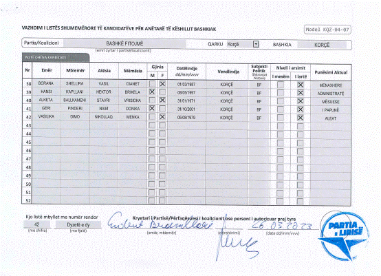 Lista e kandidatëve të koalicionit “Bashkë Fitojmë” për Këshillin Bashkiak të Korçës