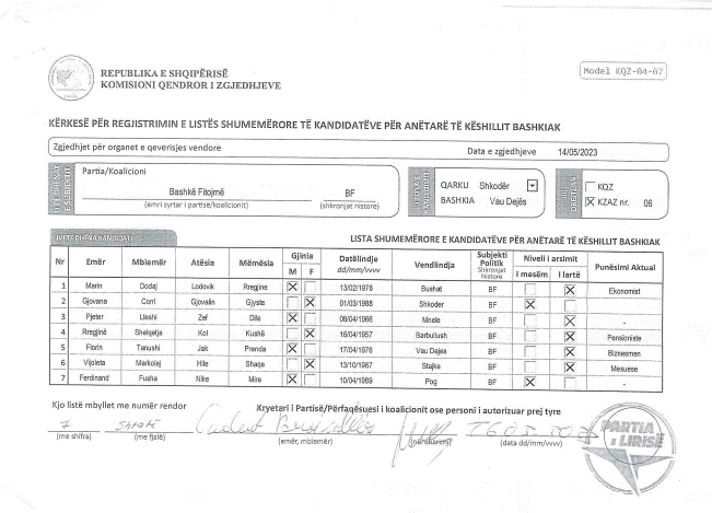 Lista e kandidatëve të koalicionit “Bashkë Fitojmë” për Këshillin Bashkiak të Vaut të Dejës