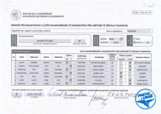 Lista e kandidatëve të koalicionit “Bashkë Fitojmë” për Këshillin Bashkiak të Dimalit