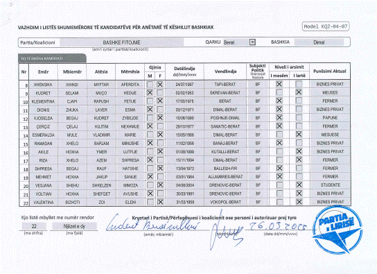 Lista e kandidatëve të koalicionit “Bashkë Fitojmë” për Këshillin Bashkiak të Roskovecit
