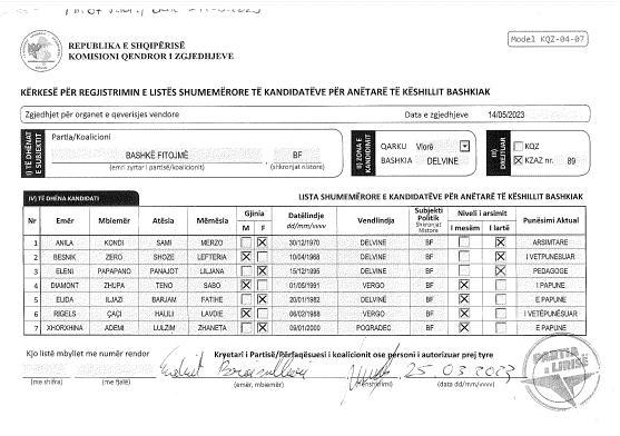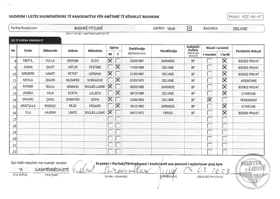 Lista e kandidatëve të koalicionit “Bashkë Fitojmë” për Këshillin Bashkiak të Delvinës