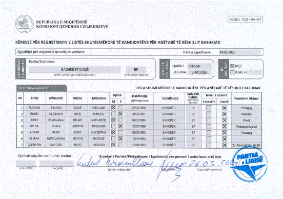 Lista e kandidatëve të koalicionit “Bashkë Fitojmë” për Këshillin Bashkiak të Shkodrës