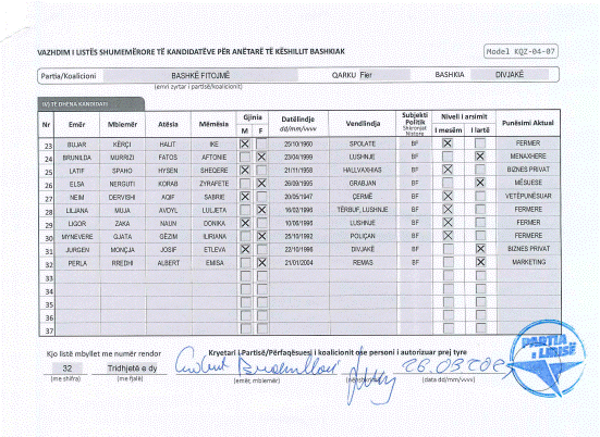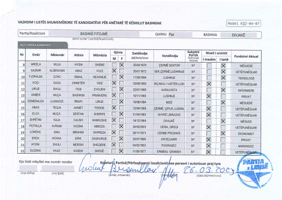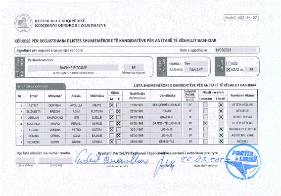 Lista e kandidatëve të koalicionit “Bashkë Fitojmë” për Këshillin Bashkiak të Divjakës
