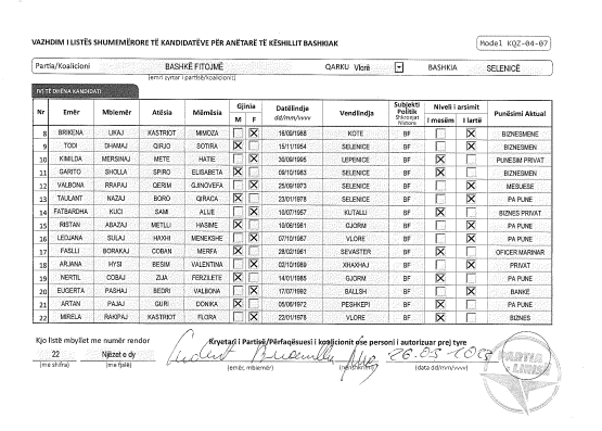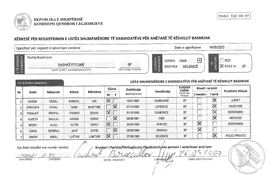 Lista e kandidatëve të koalicionit “Bashkë Fitojmë” për Këshillin Bashkiak të Selenicës