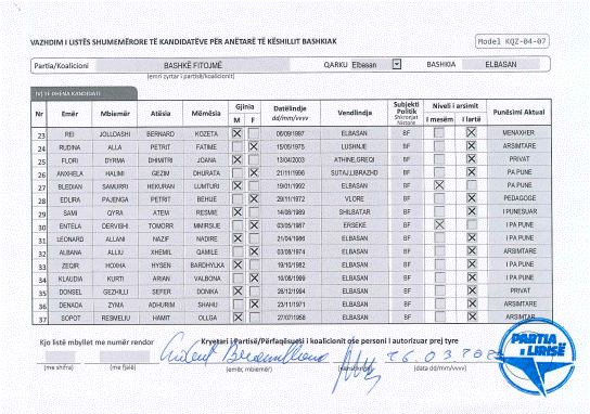 Lista e kandidatëve të koalicionit “Bashkë Fitojmë” për Këshillin Bashkiak të Elbasanit