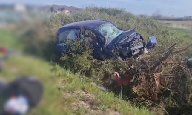 Ndërkohë automjeti me të cilin udhëtonin ka përfunduar në kanal, i dëmtuar rëndë.