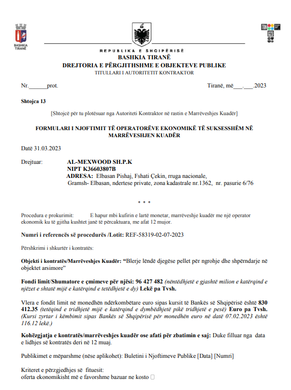Në garë për tenderin me objekt “blerjen e lëndëve djegëse pellet për ngrohje dhe shpërndajen në objektet arsimore”, përveç kompanisë së Myftaraj që është shpallur fituese, kanë qenë edhe dy konkurrentë të tjerë.