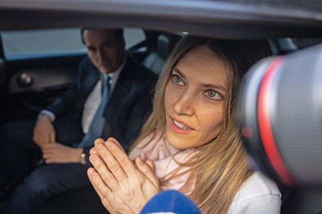 Ajo vetë ishte ulur në anën e majtë të makinës që e transportonte, hapi dritaren dhe foli me gazetarët duke buzëqeshur, ndërsa pranë saj ishte ulur avokati Michalis Dimitrakopoulos dhe babai i saj.