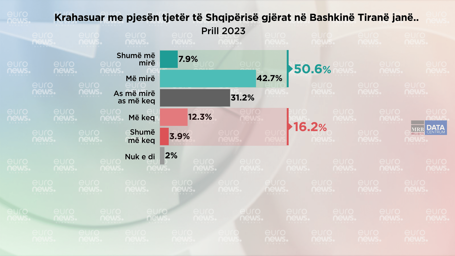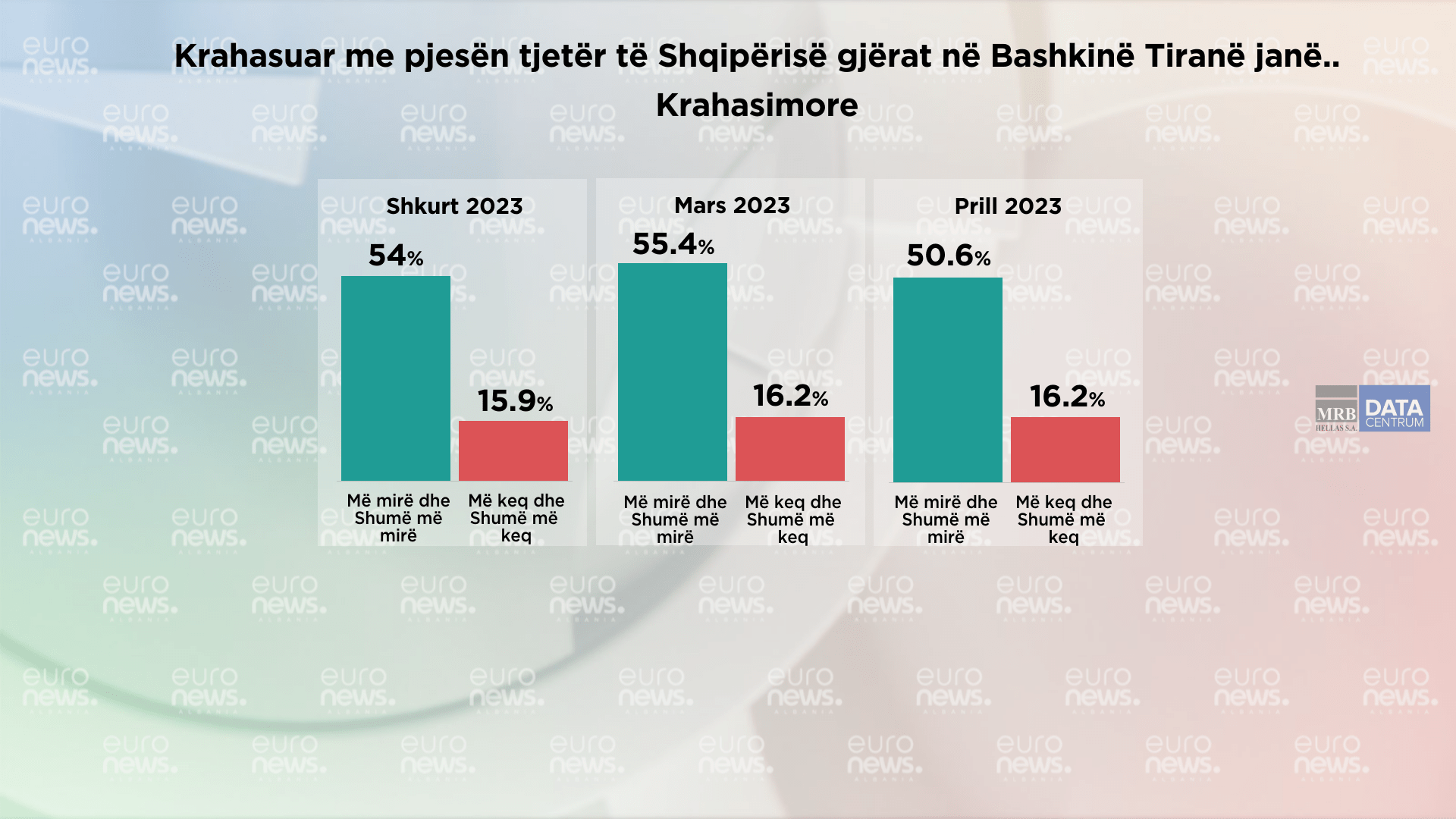 Ndërsa ata që mendojnë se gjërat në Bashkinë Tiranë po shkojnë më keq se në vend në shkurt ishin 15.9%, ndërkohë që në muajin mars dhe prill shifra nuk ka ndryshuar duke mbajtur vlerën e 16.2%.