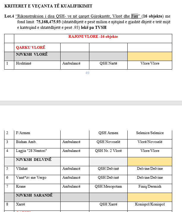 Sipas dokumentit të mësipërm, në vitin 2018, Ministria e Shëndetësisë hapi tenderin me objekt “rikonstruksione të Qendrave Shëndetësore (QSH) në qytete/njësi administrative” në të gjitha qarqet e Shqipërisë. Nëse do të shohësh edhe fondet, janë të njëjta me ato të akorduara në 2023-shin.