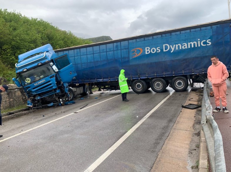 Drejtuesi i një kamioni dyshohet se ka humbur kontrollin e mjetit e për pasojë ka përfunduar në mes të rrugës, duke e bllokuar qarkullimin e automjeteve.