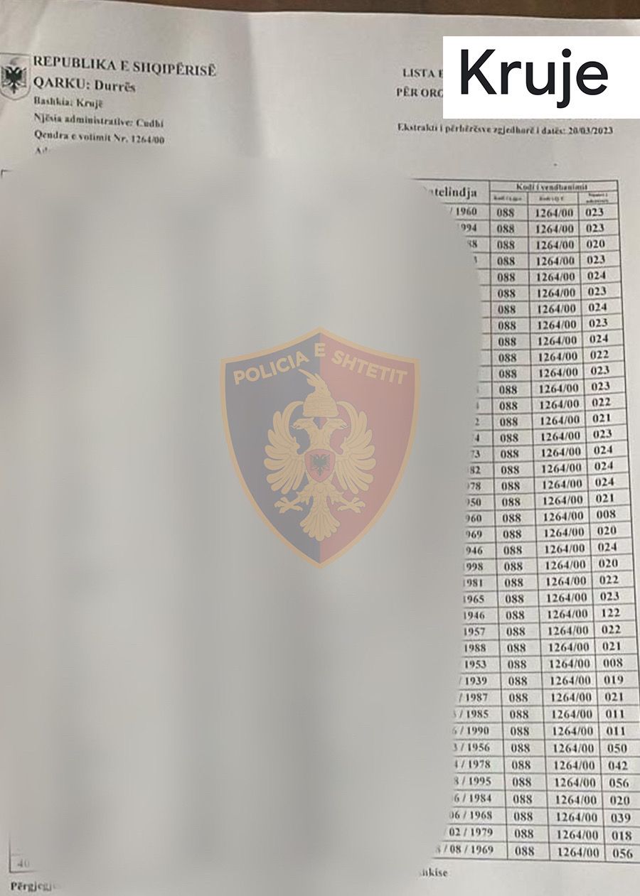 Në vijim të zbatimit të masave të ndërmarra nga Policia e Shtetit, për garantimin e rendit dhe sigurisë gjatë gjithë procesit zgjedhor, si dhe për parandalimin, evidentimin dhe goditjen e krimeve zgjedhore, strukturat hetimore të Drejtorisë Vendore të Policisë Durrës, në bashkëpunim me ato të Komisariatit të Policisë Krujë, falë inteligjencës informative, kanë evidentuar dhe goditur një rast të shpërndarjes së parave, me qëllim blerjen e votës.