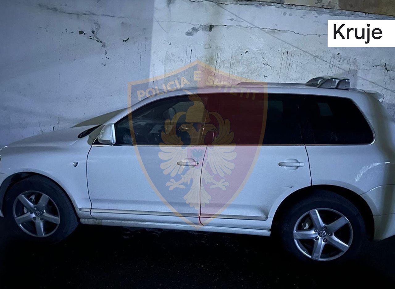 Shërbimet e Policisë, bazuar në informacionet e siguruara, kanë lokalizuar në rrugën e lagjes “Abaze”, Krujë, si dhe kanë bllokuar automjetin tip “Volksëagen Touareg” që drejtohej nga shtetasi B. M.