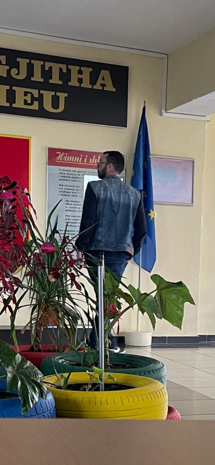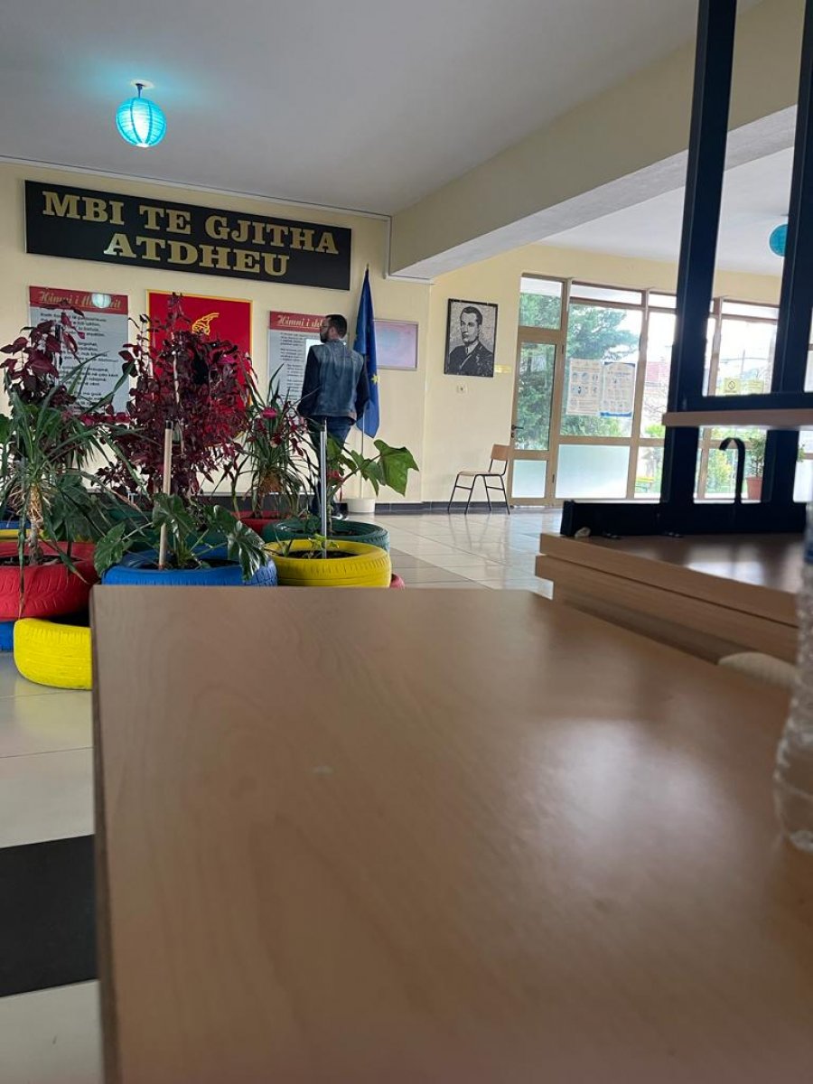 Në fotot e mëposhtme, kreu i AKU në Korçë është kapur teksa futet në ambientet e brendshme të Qendrës së Votimit në shkollën “Raqi Qirinxhi”.