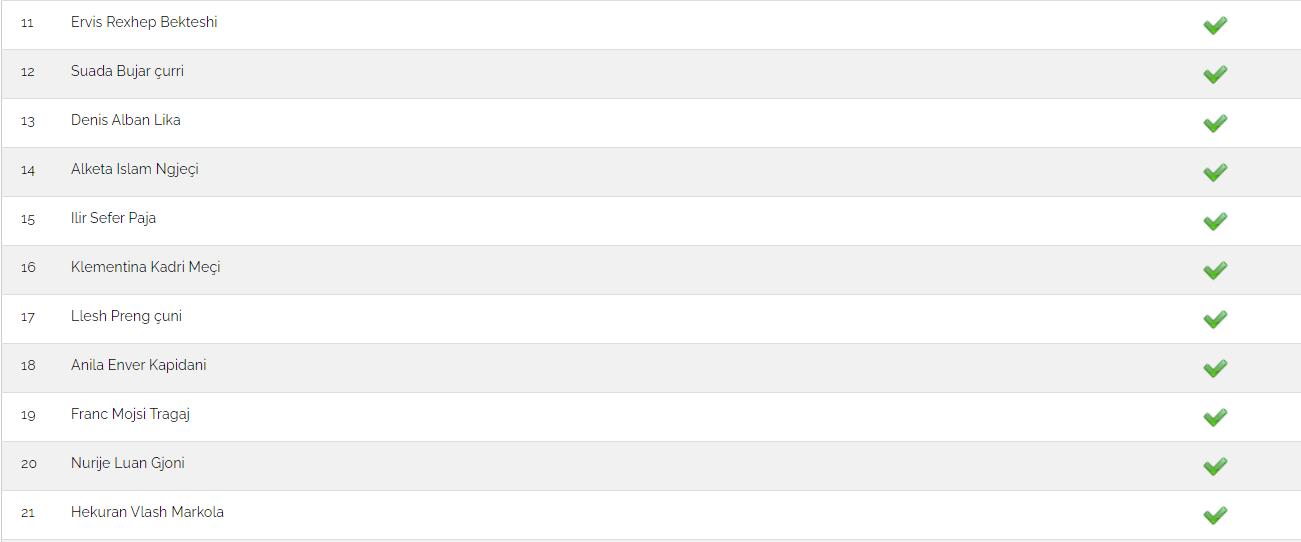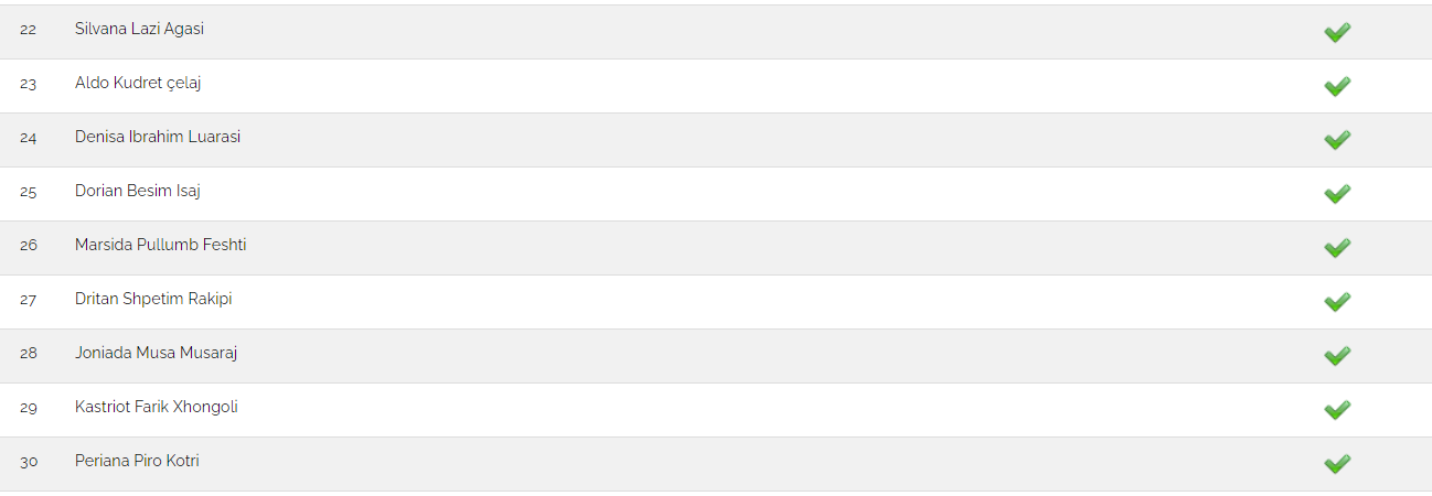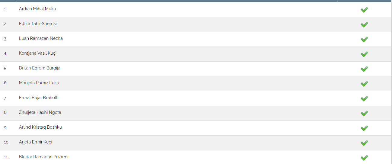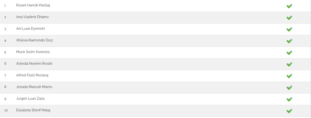 Më poshtë lista e plotë me emrat e kandidatëve që kanë fituar mandatin, sipas partive të caktuara: