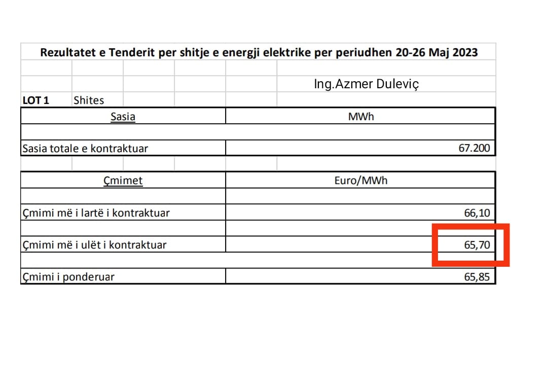Eksperti i energjisë Azmer Duleviç ka deklaruar në një postim në Facebook se sot KESH ka shitur energji me 66€/MWh jashtë Bursës Alpex, ndërkohë që çmimi më i ulët në Bursën Alpex për datën 19 Maj është 87.7 Euro/Mwh.
