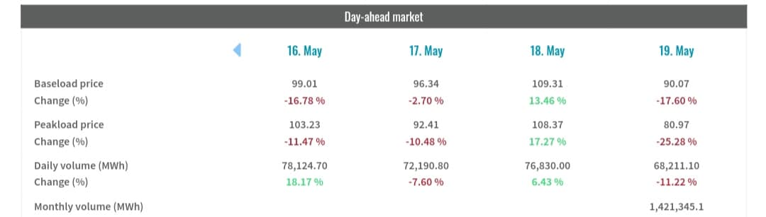 Ps.Për reference keni dhe çmimet e energjisë për datën 19 Maj në bursën Austriake dhe atë Hungareze.