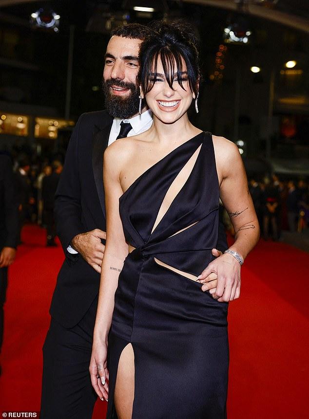 Mbrëmjen e të premtes çifti pozoi në tapetin e kuq në shfaqjen e filmit “Omar La Fraise”. Për eventin, Dua veshi një fustan të zi “Celine” nga Hedi Slimane, ndërkohë Romain dukej gjithashtu elegant me një kostum të zi.