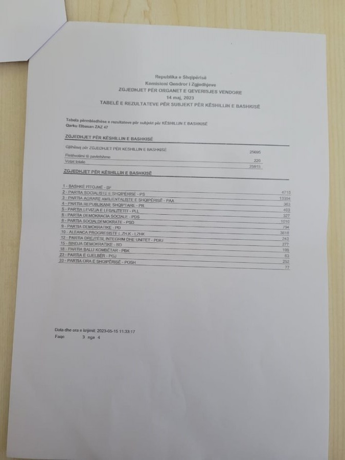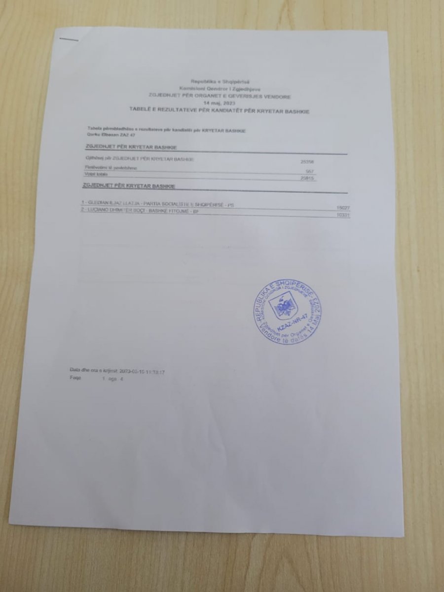 Komisioni Zonal i Administrimit Zgjedhor ne 47, ka certifikuar rezultatin e nxjerrë nga operatorët, të cilat janë depozituar në Komisionin Qendror te Zgjedhjeve KQZ
