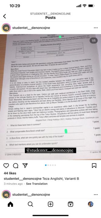 Këtë të Enjte, rreth 30 mijë maturantë (sipas llogaritjeve të Ministrisë së Arsimit) iu nënshtruar provimit të parë të Maturës Shtetërore për këtë vit, atij të gjuhës së huaj. Por, disa minuta pas nisjes së testimit, në rrjetet sociale ka nisur publikimi i tezave të, që sipas zotimeve të ministres së Arsimit Evis Kushi, do zhvillohej nën masa të rrepta mbikëqyrjeje për të shmangur të tilla shkelje.