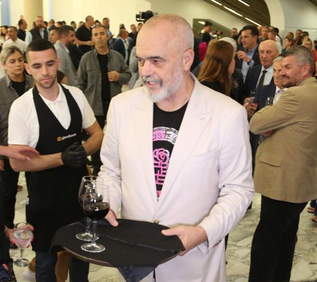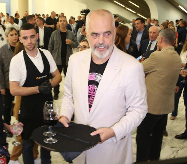 Kryeministri Edi Rama gjatë 32-vjetorit të PS-së ka bërë dhe rolin e kamarierit.