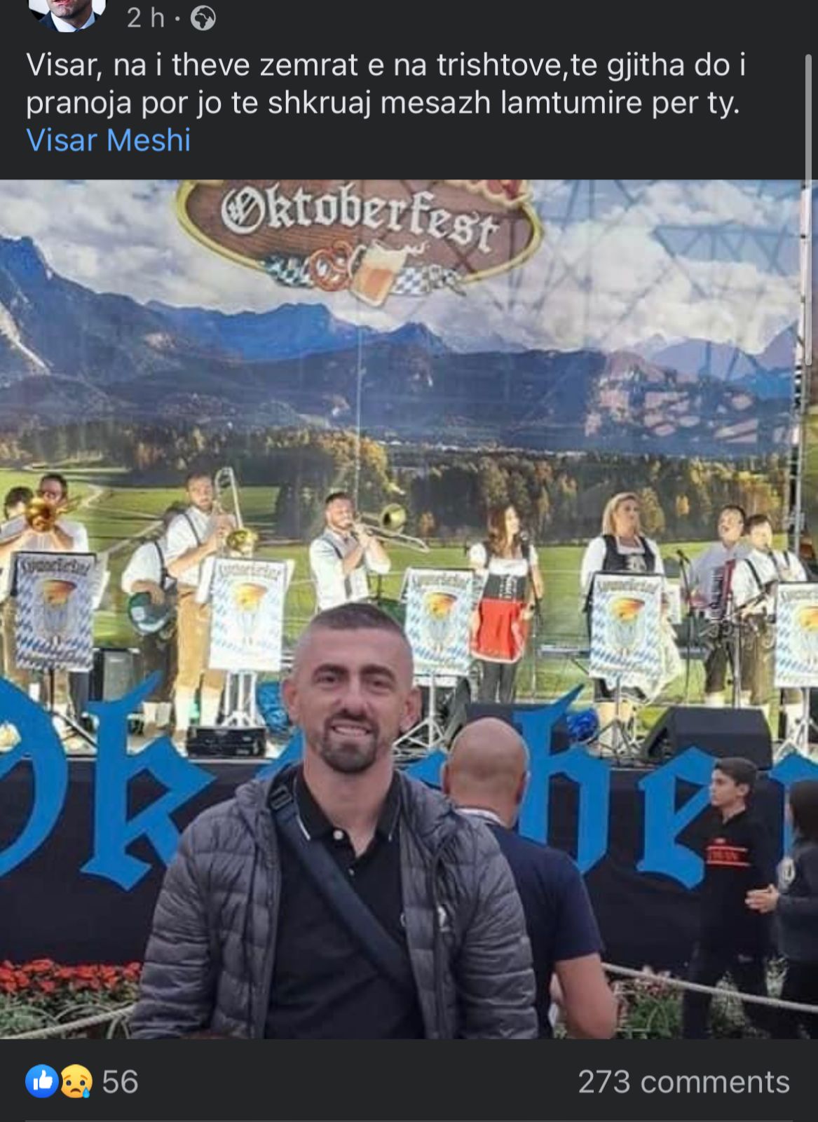 Ndërkohë, të afërmit e Visar Meshit kanë shprehur në rrjetet sociale ngushëllimet për ikjen e parakohshme të 35-vjeçarit.