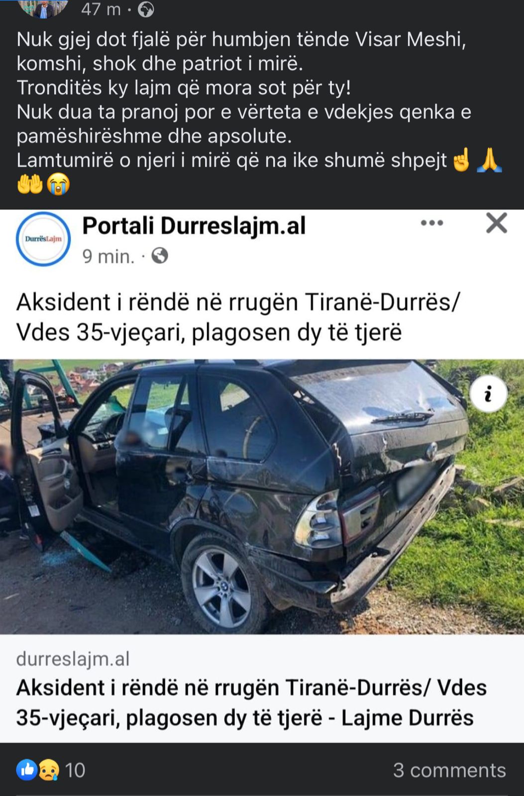 “Nuk gjej dot fjalë për humbjen tënde Visar Meshi, komshi, shok dhe patriot i mirë. Tronditës ky lajm që mora sot për ty! Nuk dua ta pranoj por e vërteta e vdekjes qenka e pamëshirëshme dhe apsolute. Lamtumirë o njeri i mirë që na ike shumë shpejt”, shkruan një tjetër.