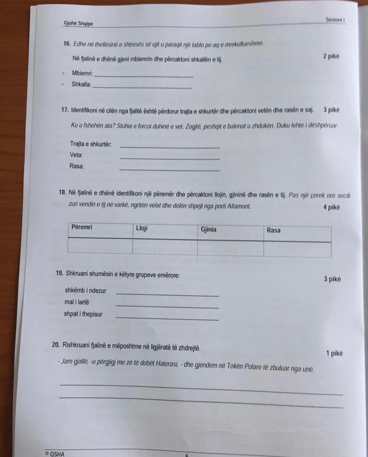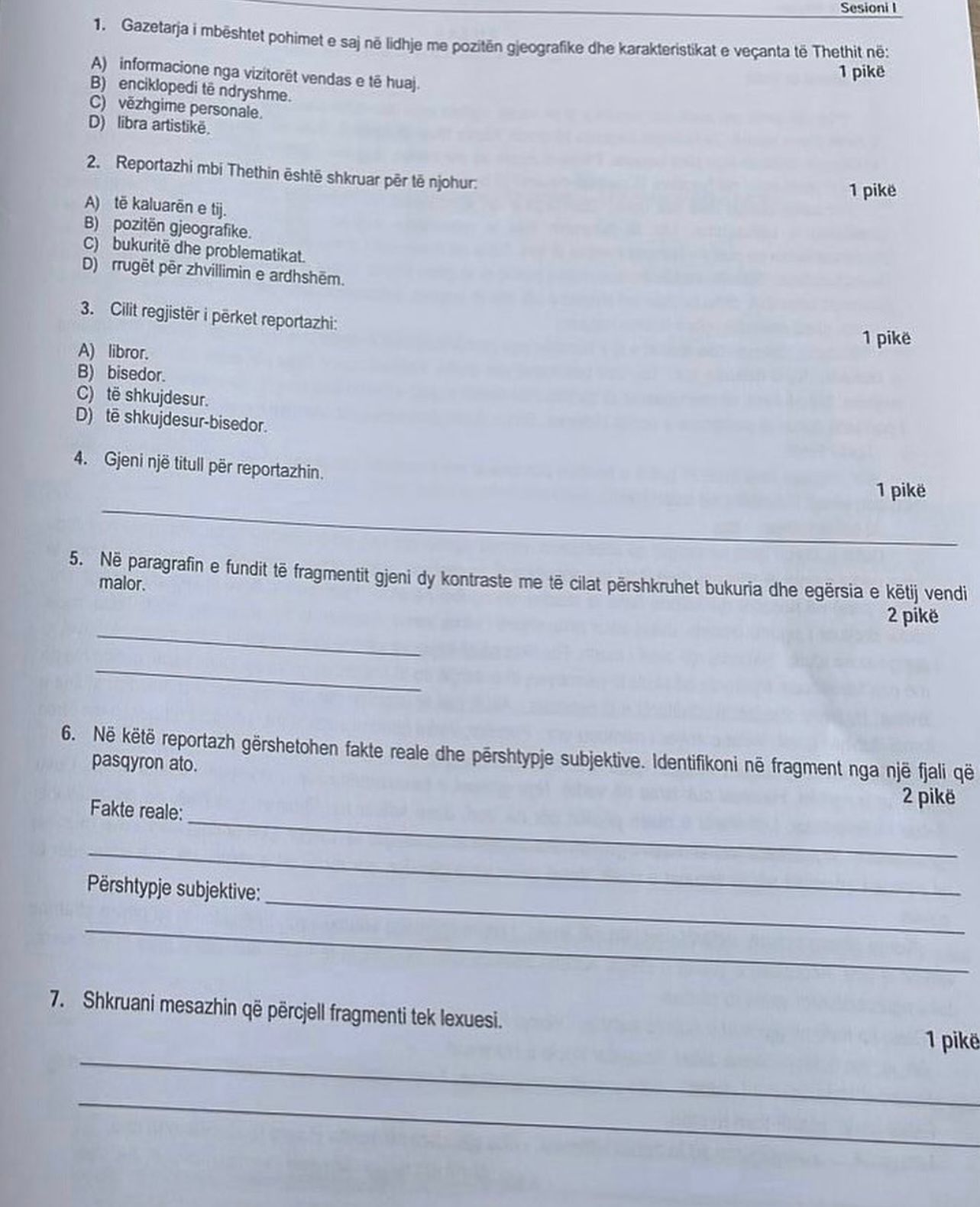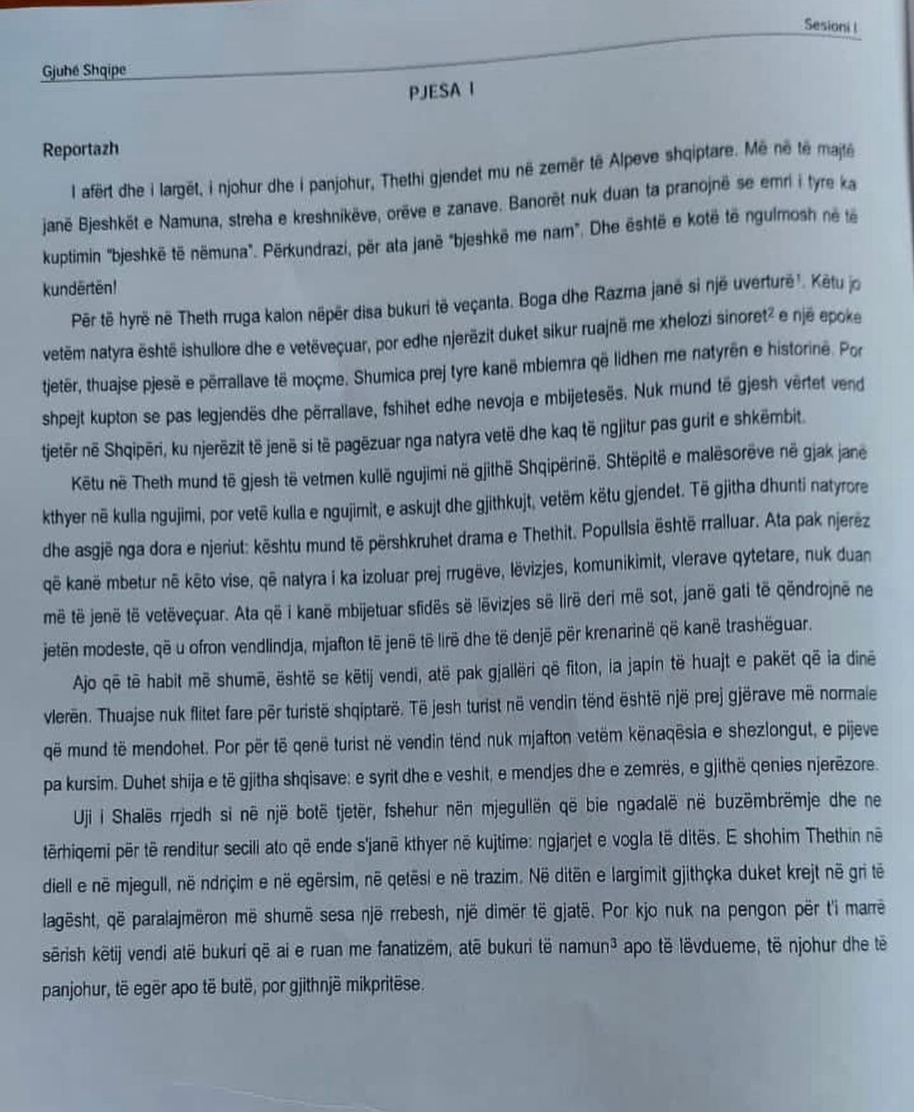 Pak minuta pasi nxënësit e klasave të 9-ta kanë hyrë në provimin e Gjuhës Shqipe, në rrjete sociale është publikuar teza e këtij provimi.