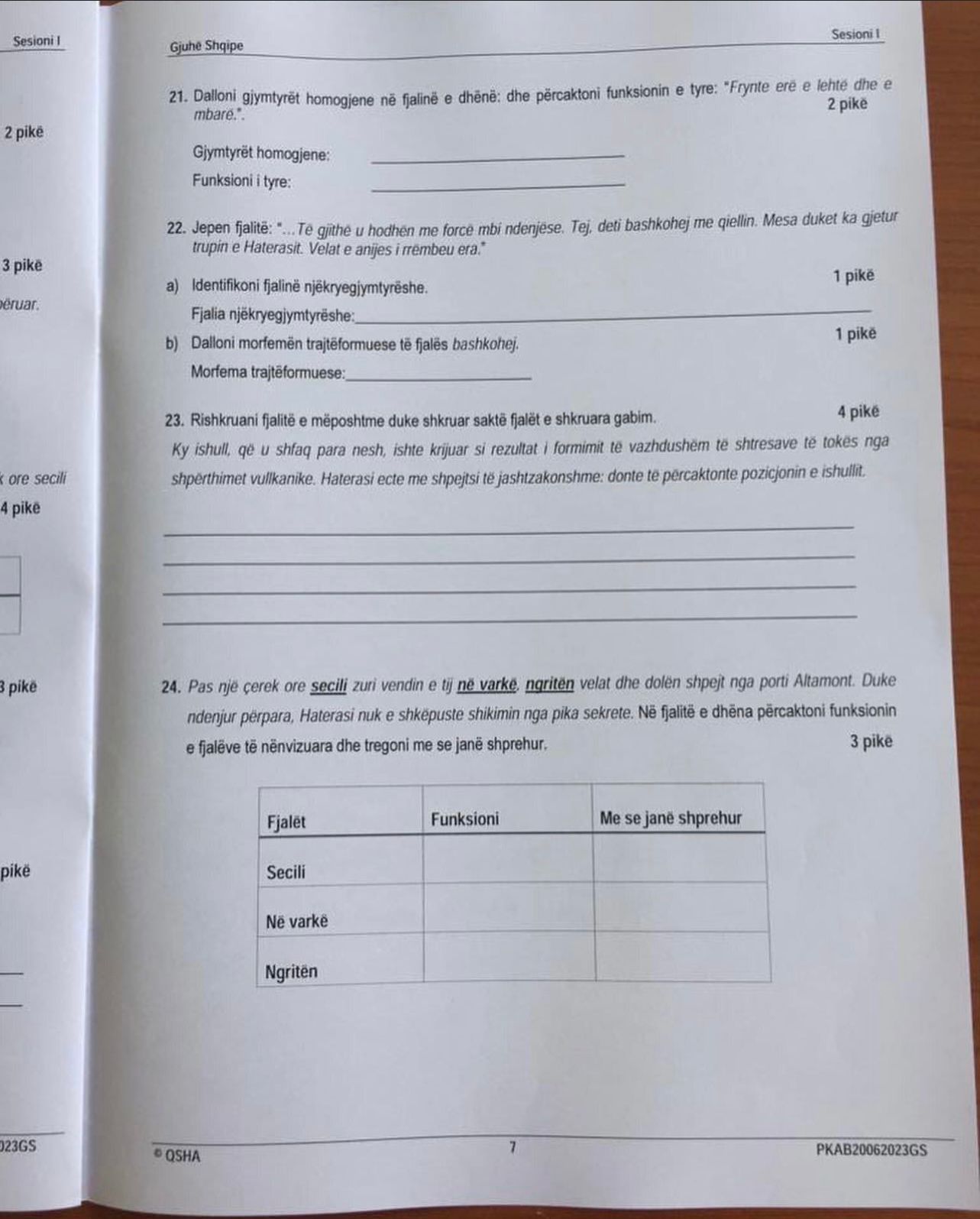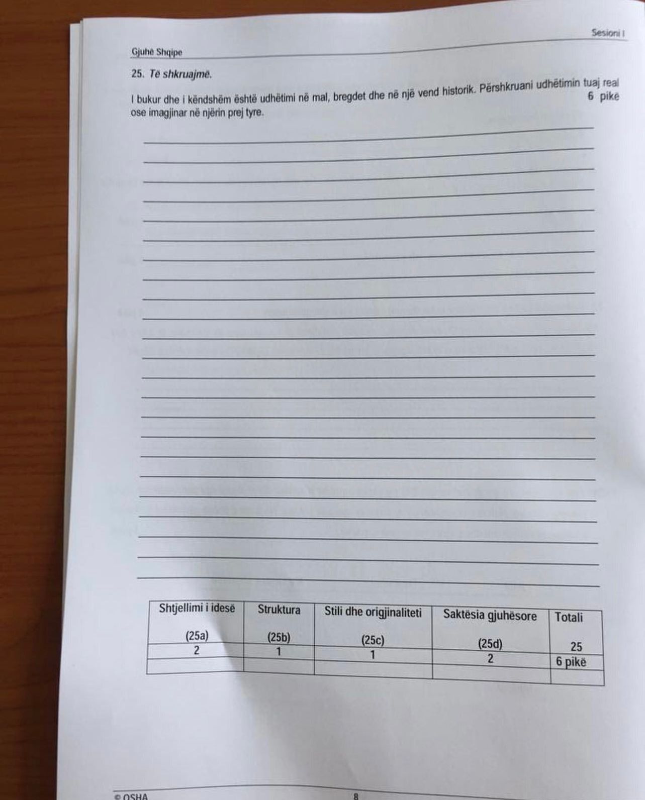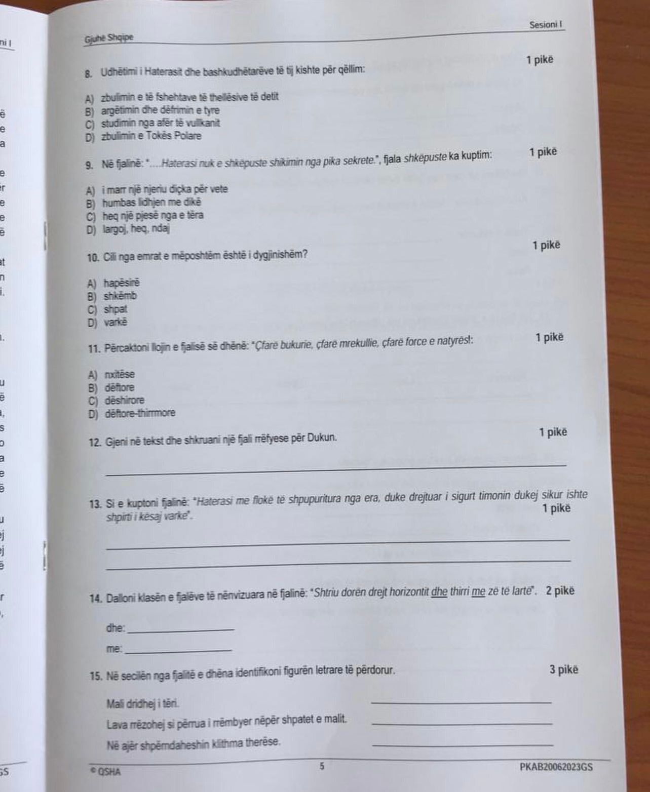 Pak minuta pasi nxënësit e klasave të 9-ta kanë hyrë në provimin e Gjuhës Shqipe, në rrjete sociale është publikuar teza e këtij provimi.