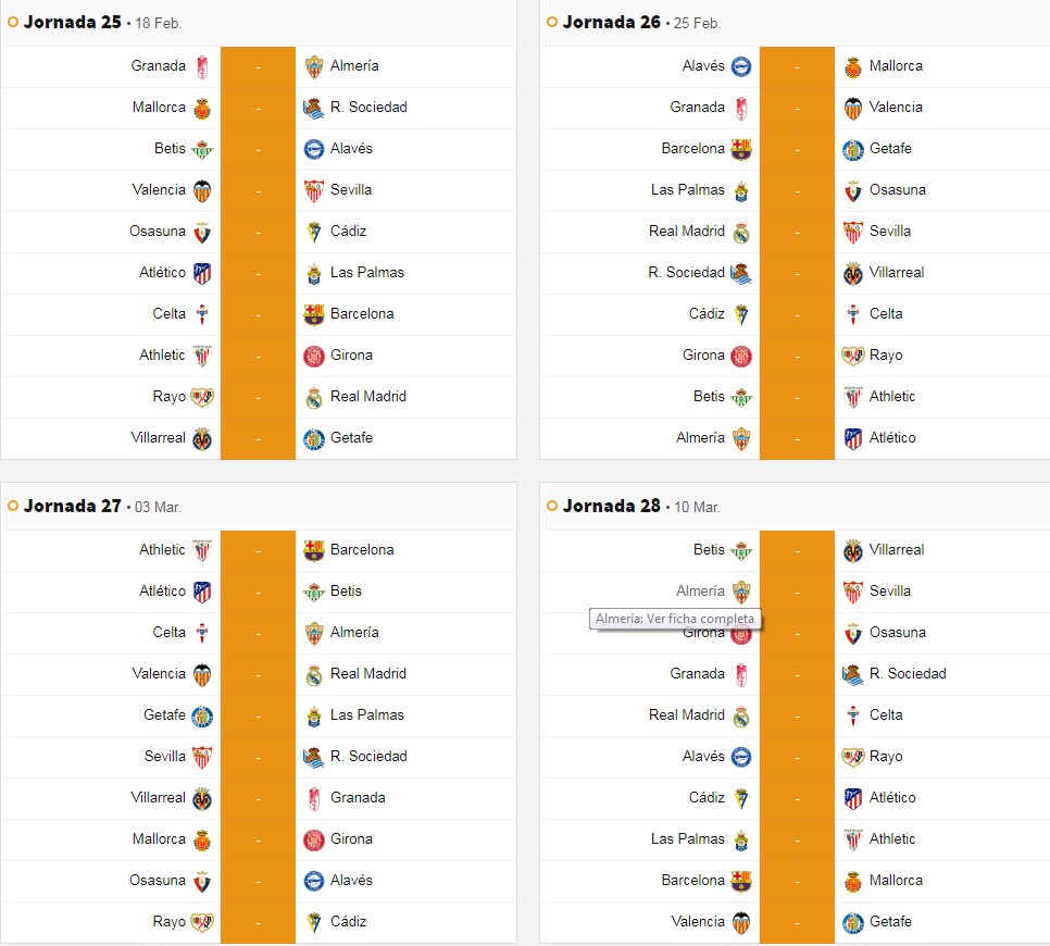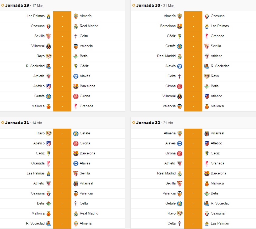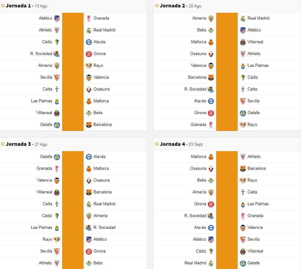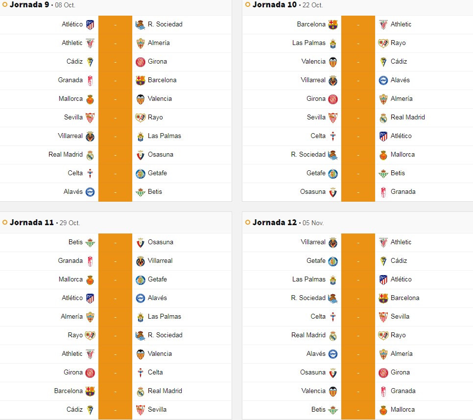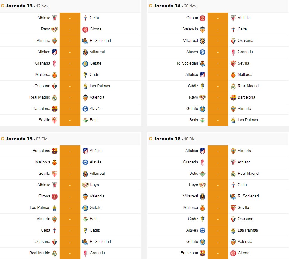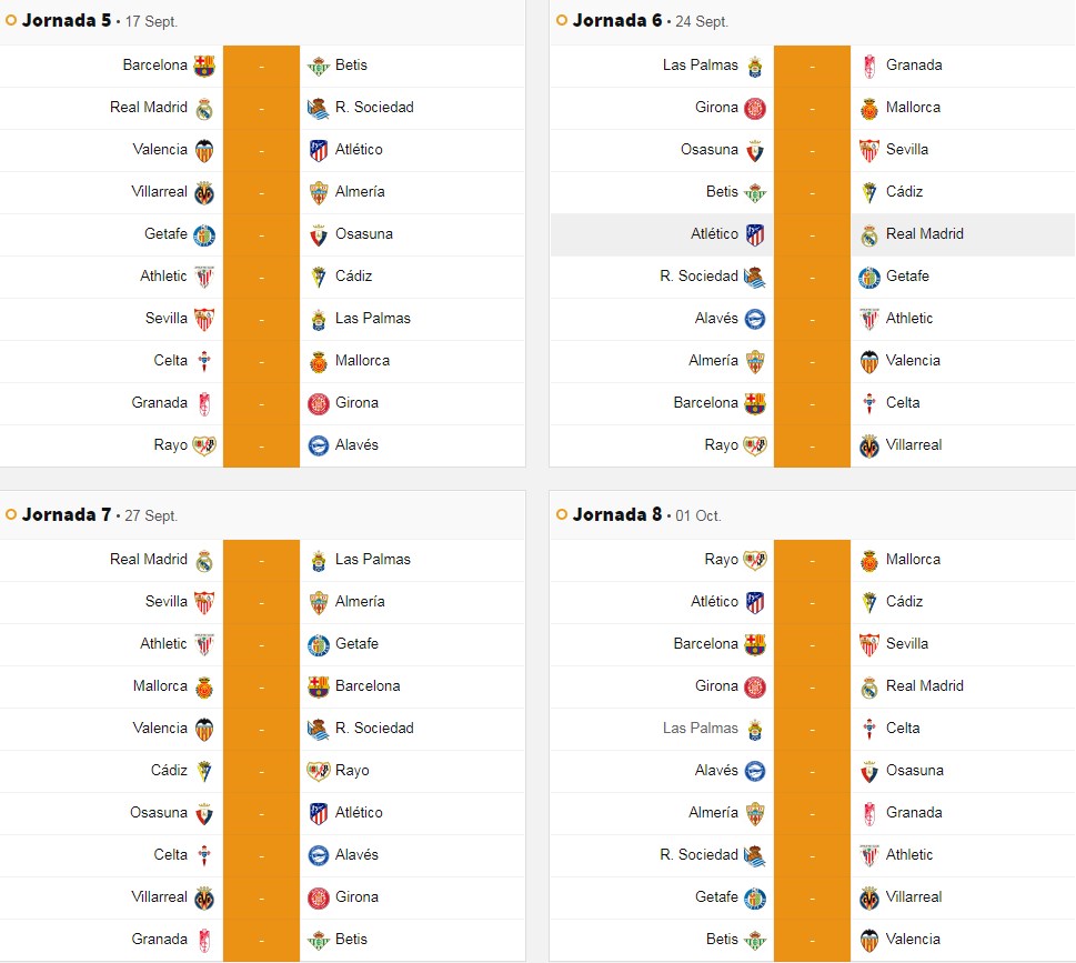 Ndërsa “El Clasico” mes Barcelonës dhe Realit do të kemi mundësinë ta shijomë në javën e 11-të, ose më sakët me 29 tetor. Mbi të tjera një duel tjetër interesant ai i derbit të Madrid mes Atelticos dhe Realit do tyë luhet në javën e 6-të me 24 shtator.