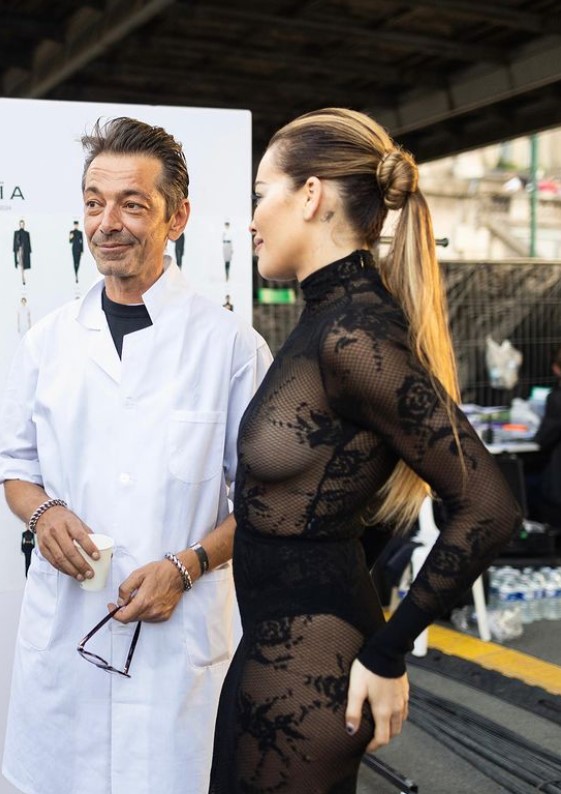 Rita Ora kishte veshur një fustan të zi me dantellë, i cili ishte komplet i tejdukshëm. Madje, siç duket edhe në foto ajo nuk ka veshur as reçipeta.