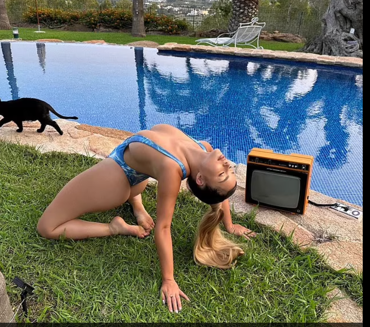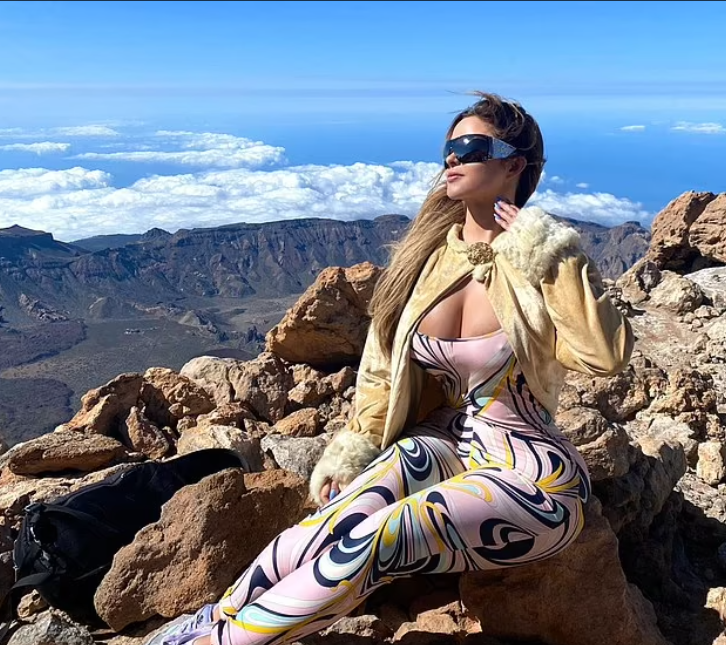 Seksbomba britanike ka publikuar foto me një body blu i cili ja nxjerr në pah gjoksin bombastik.