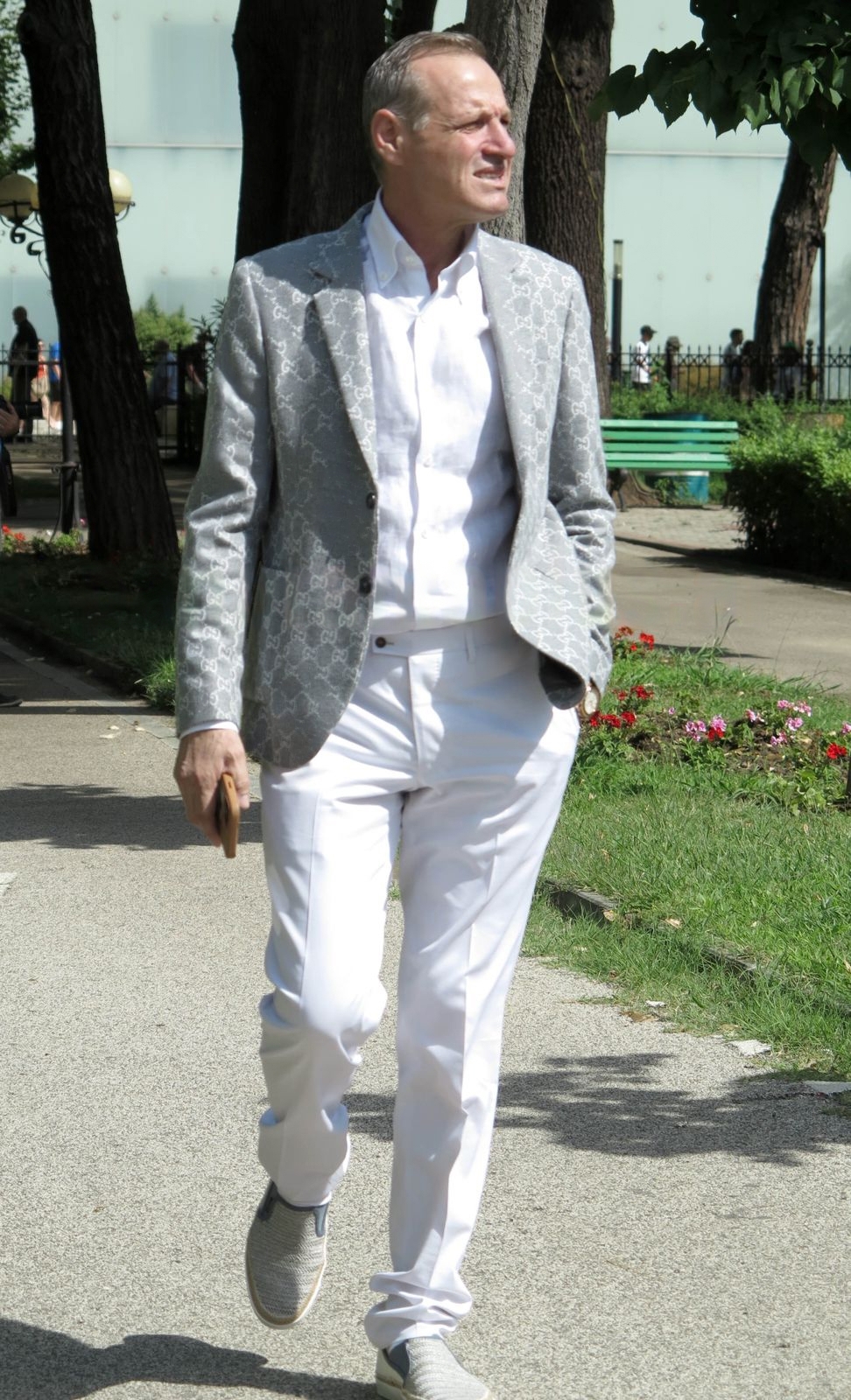 Deputeti ka mbërritur në Parlament i veshur me pantallona dhe këmishë të bardhë, dhe sipër kishte zgjedhur një xhaketë në ngjyrë të çelët të firmës “Gucci”. Një veshje kjo sa e veçantë nga dizajno, aq edhe e kushtueshme nga çmimi.