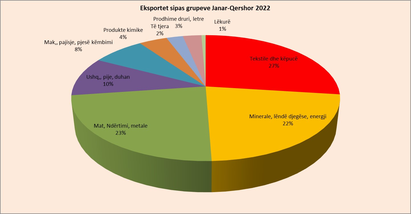 Për 6 mujorin, ky grup u tkurr me 39%, duke dhënë ndikimin më negativ në ecurinë e eksporteve.