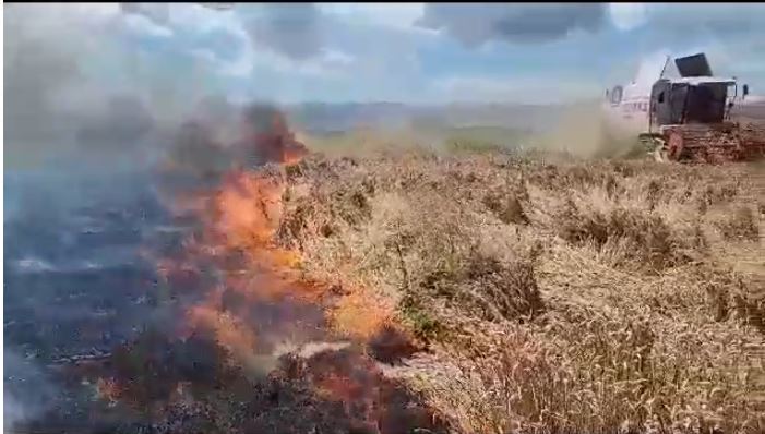 Një sipërfaqe toke e mbjellë me grurë është përfshirë nga flakët këtë të enjte, në fshatin Sheqeras të Korçës.